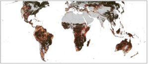 A map showing gradients centered on the tropics.