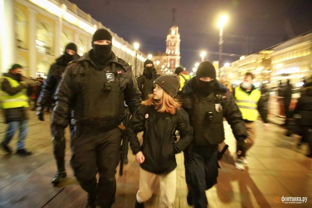 Police arrest Russian demonstrators against the war on Ukraine. Photo: Pavel Karavashkin/Fontanka