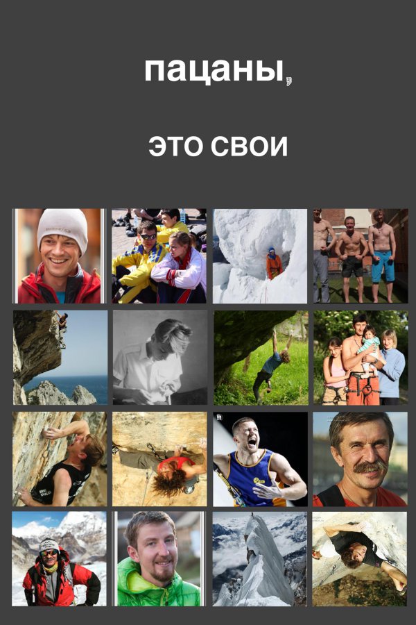 Poster featuring Ukrainian climbers, compiled by Mountain.ru staff of Anna Piunova, Kirill Filchenkov, Dmitry Klenov, Sergey Tretyakov, Maxim and Olga Kostrov.