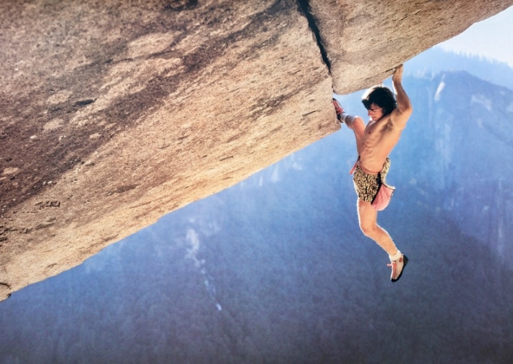 Gullich’s free solos were even more daring. In 1986, after a 10m fall on England’s Master’s Edge that severely injured his back, Gullich sought redemption in Yosemite. He targeted Separate Reality, with no footholds, just hand jams over a significant drop below him. He free soloed it, moving with calm precision. During the climb, renowned photographer Heinz Zak captured Gullich suspended mid-jam, chalk bag trailing. The image became an iconic climbing photo and is the Featured image of this article.