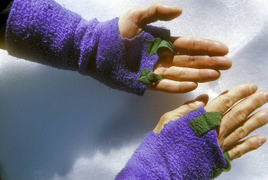 You might think that cold air might leak in through the now-wider mouth of the gloves. Not so, because you should always wear a pair of homemade wool or fleece wristlets if one of your undergarments does not already incorporate them.