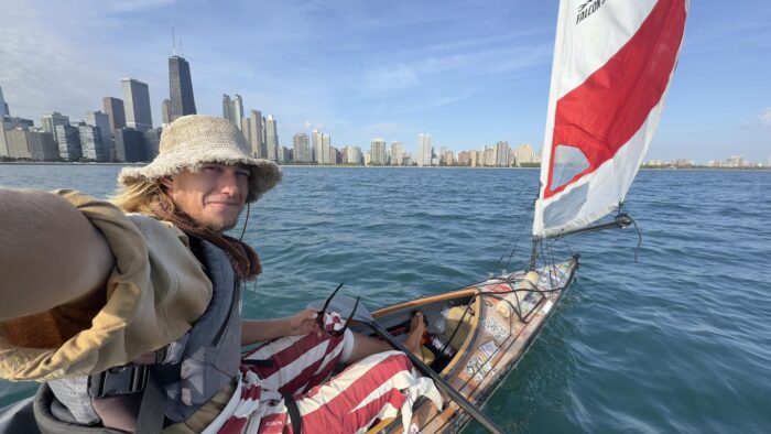 On Lake Michigan. Frank used a sail for assistance. Photo: Peter Frank