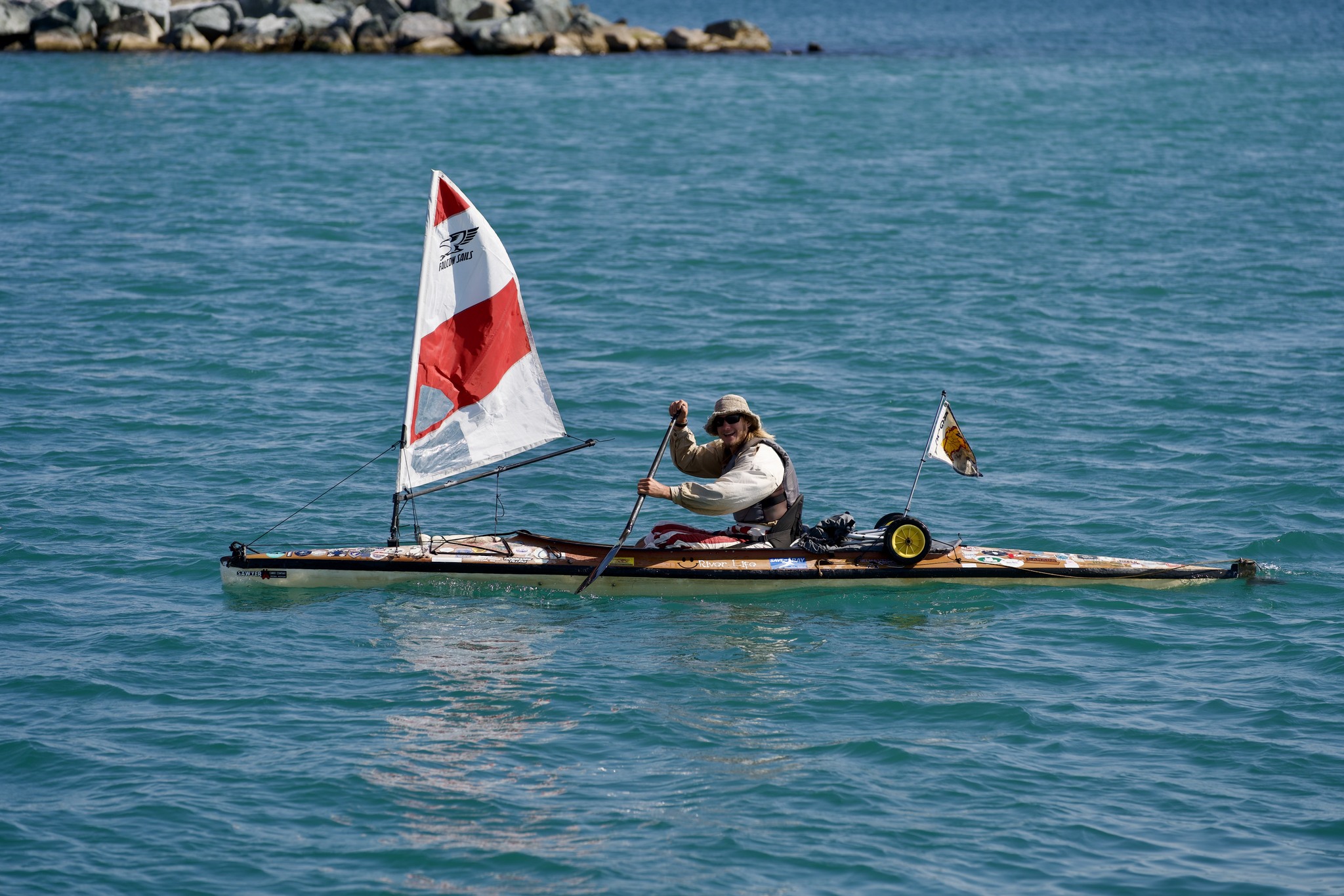 That route follows prevailing currents and winds, making it the more logical choice. Frank chose instead to go clockwise, forcing him to paddle upstream for 3,472km.