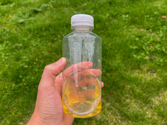 Fresh urine in a lightweight bottle. Photo: Ash Routen